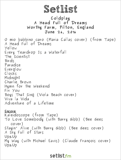 1/1 (29/06/2024) #ColdplayGlastonbury pic.twitter.com/5rnAr0qPs2— Coldplay Setlist (@setlistcoldplay) June 29, 2024