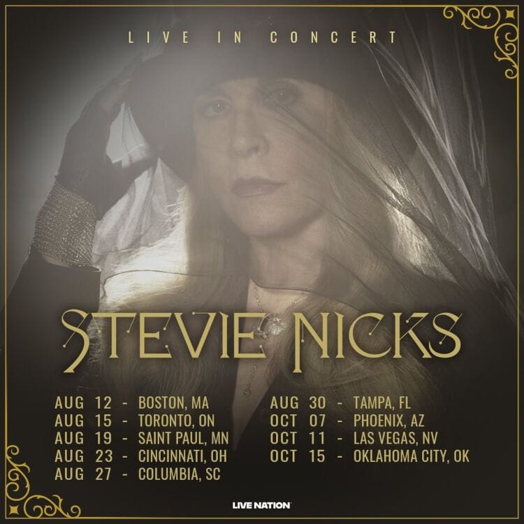 • Which cities will Stevie Nicks be performing in during the 2025 tour?